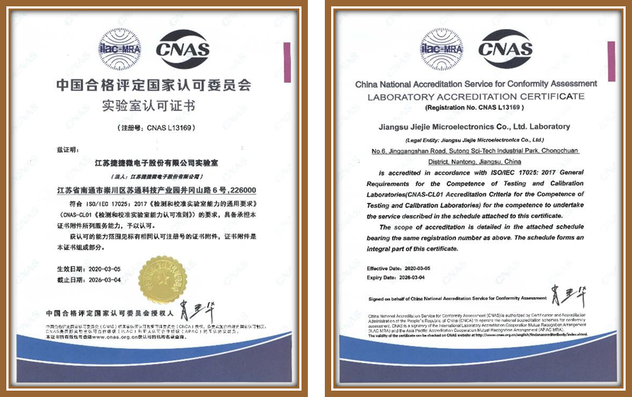 江蘇捷捷微電子股份有限公司實(shí)驗(yàn)室測(cè)試中心,提供多種可靠性試驗(yàn),包括環(huán)境可靠性測(cè)試、板級(jí)可靠性試驗(yàn),使用壽命可靠性測(cè)試和全方位的失效分析服務(wù)。 捷捷微電子股份有限公司實(shí)驗(yàn)室已經(jīng)獲得中國合格評(píng)定國家認(rèn)可委員會(huì)的實(shí)驗(yàn)室認(rèn)可證書(CNAS認(rèn)證) 江蘇捷捷微電子股份有限公司實(shí)驗(yàn)室測(cè)試中心成立于 2011 年,分南通、啟東、深圳3個(gè)測(cè)試場(chǎng)地?,F(xiàn)有工作人員50名,其中管理人員 5 名,檢測(cè)人員 45名,簽字授權(quán)人4名,中級(jí)職稱人員2名,助理職稱人員6名,本科學(xué)歷人員21名。實(shí)驗(yàn)室占地面積2000平方米,南通1200平方米,啟東800平方米。2018年8月發(fā)布并實(shí)施實(shí)驗(yàn)室管理體系,并在2020年3月取得CNAS實(shí)驗(yàn)室認(rèn)可證書(L13169)。實(shí)驗(yàn)室現(xiàn)有各類設(shè)備近170臺(tái),可開展可靠性試驗(yàn)項(xiàng)目20余項(xiàng),浪涌過電壓檢測(cè)項(xiàng)目10余項(xiàng),失效分析10余項(xiàng)以及特性測(cè)試等項(xiàng)目。與中科院微電子所、西電、中車等單位存在長期合作關(guān)系。
